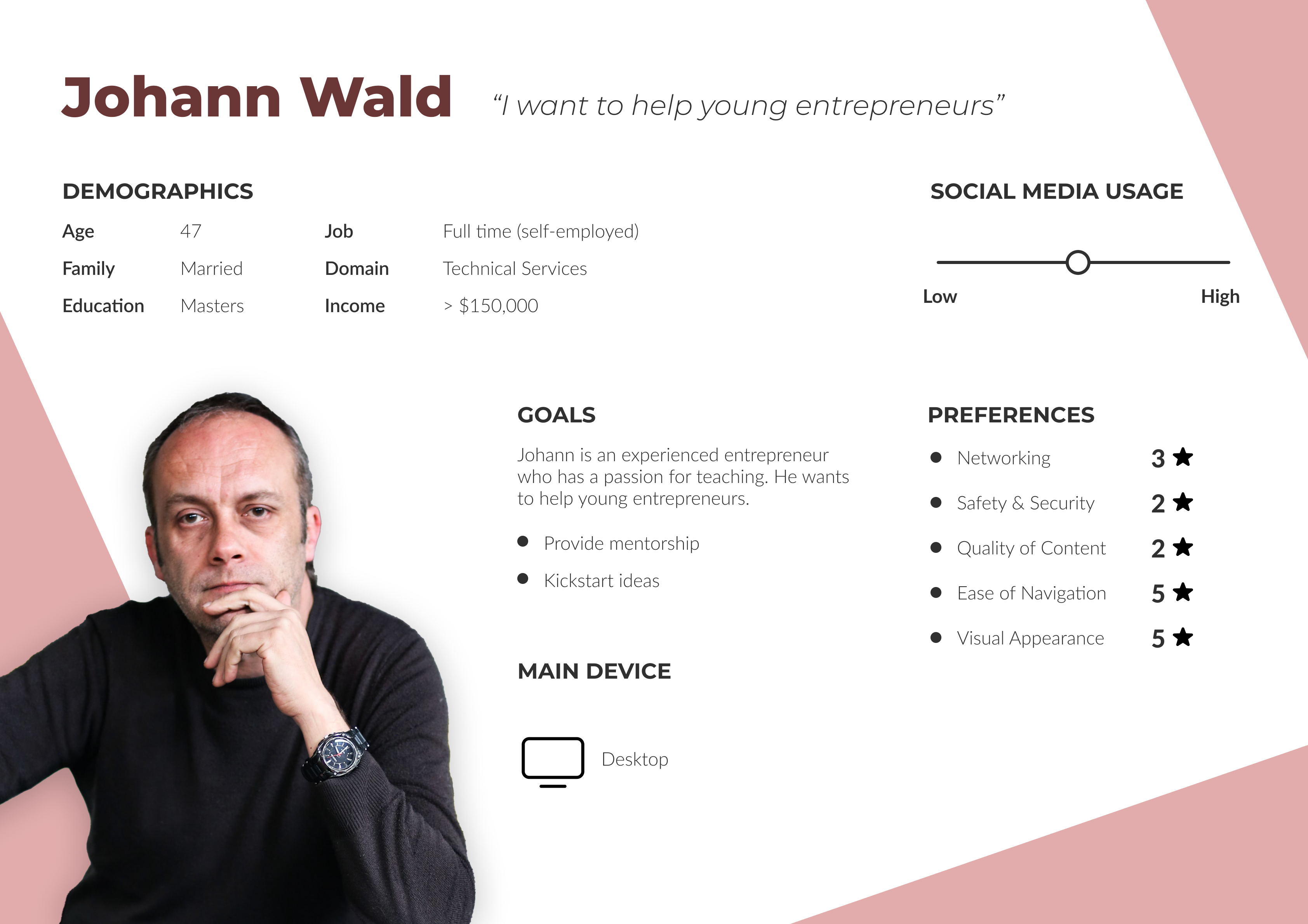 Two distinct groups with overlapping needs: aspiring entrepreneurs (mostly 20–35) looking for mentorship and resources, and seasoned professionals willing to guide emerging talent. Both needed a reason to keep coming back.
