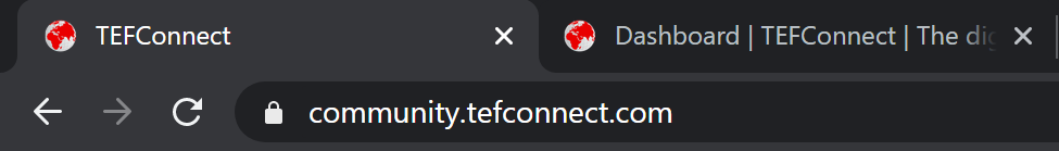 The Community tab redirects to a separate domain (community.tefconnect.com) where Marketplace is unavailable. The logo in Community doesn't redirect back to the main site.