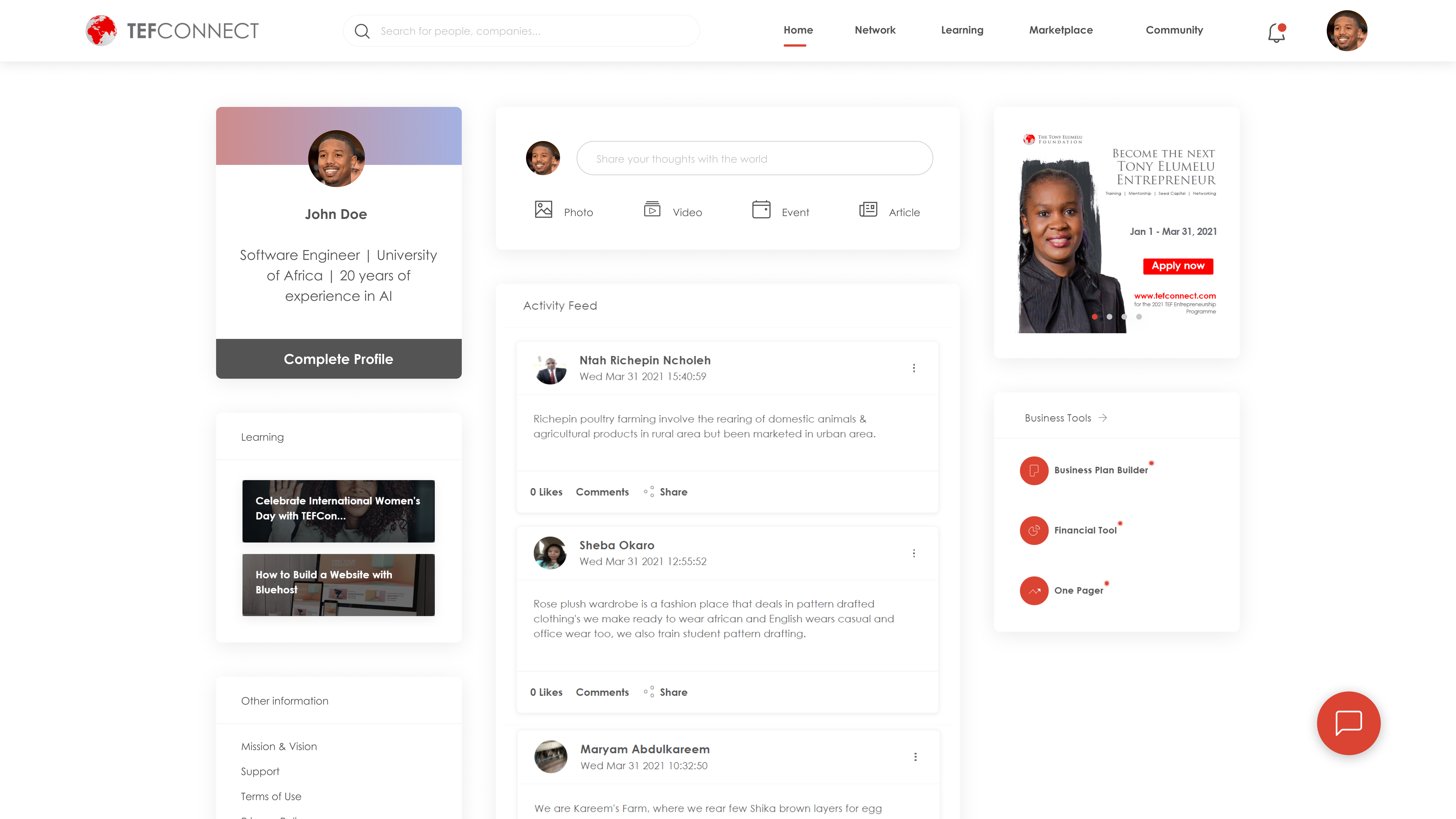 Tony Elumelu Foundation (TEF) built something ambitious: a social network called TEFConnect designed to connect aspiring entrepreneurs across the continent. The vision was bold — a LinkedIn meets Facebook for African business minds — but the platform wasn't gaining the traction it deserved. I was brought in to figure out why.